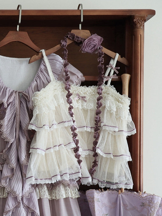 Top Tulle Purple Dotted Tiered Cami