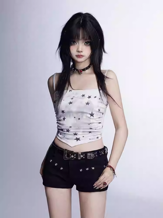Dye Star Print Glamorous White Tie Cami Top Cropped