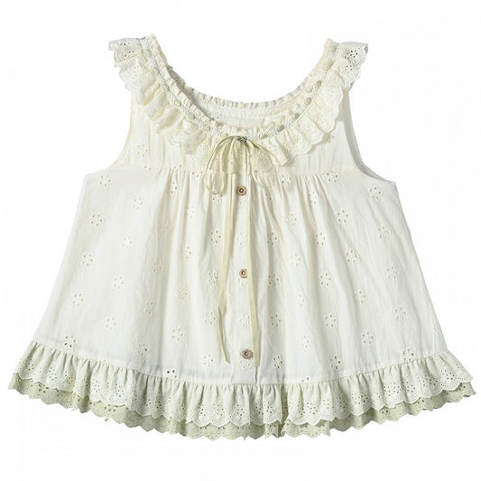 Hem Big Bow Glamorous White Lace Trim Ruffled Cami Top with
