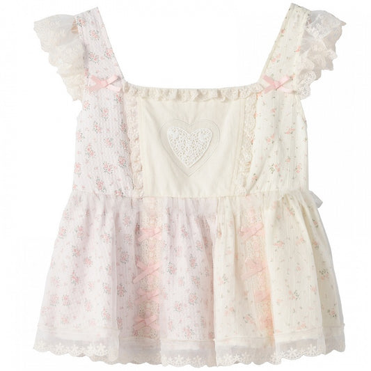 Pink Flutter Sleeve Bowknot Ruffled Floral Tank Top Lace Trim Details
