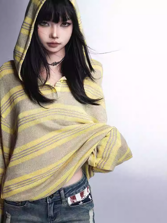 Loose Protection Yellow/Black Sun Top Knitted Hooded