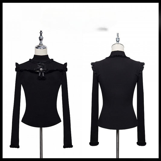 Print Glamorous Knitted Gothic Black Angel Top with Detachable Sleeves