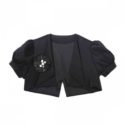 Cropped Sleeves Top Puff Black