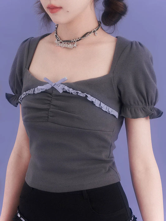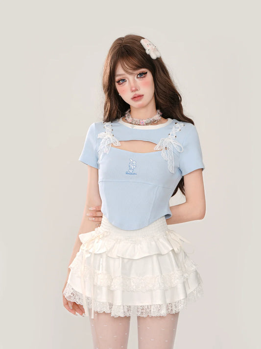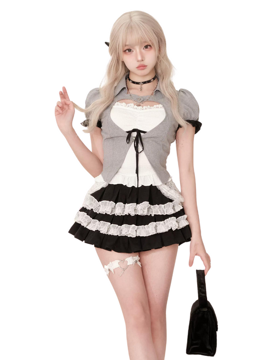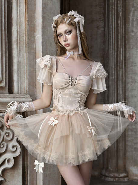 Short Lace French Ribbon Broken Top Vest Ballet Ultra