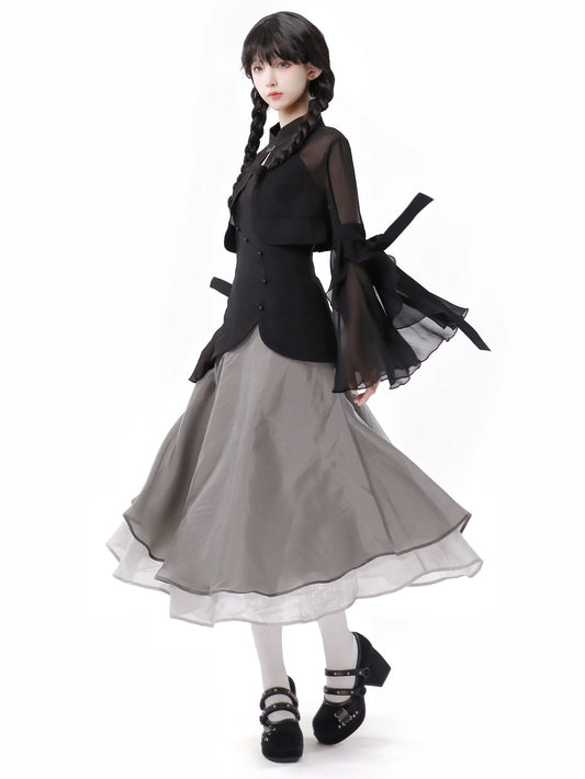 Shirt Top Dress Calligraphy Chiffon Suspender Chiffon Skirt