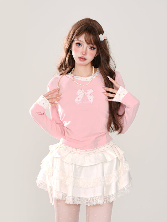 Hazelnut Cake Ribbon + Ruffle Milk Top Skirt