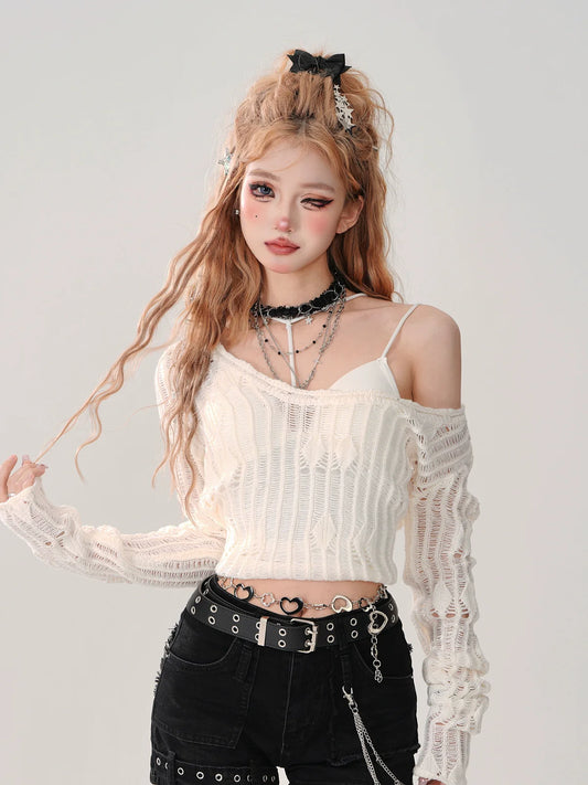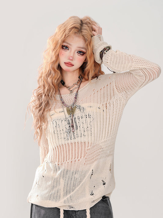 Summer Knit + Tube Top Openwork Sheer Ripped