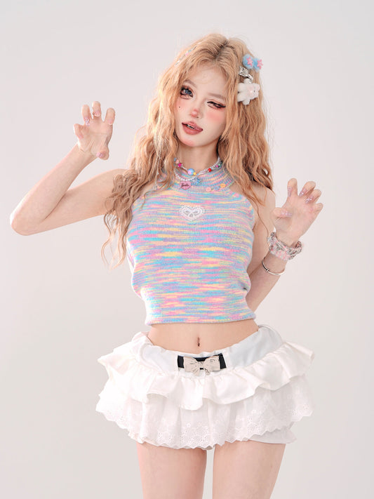 Top Girly Suspender Knit Short Cami Colorful