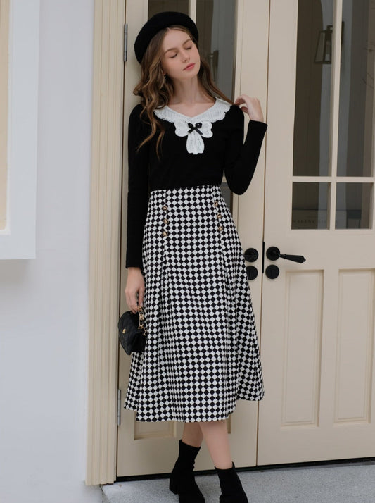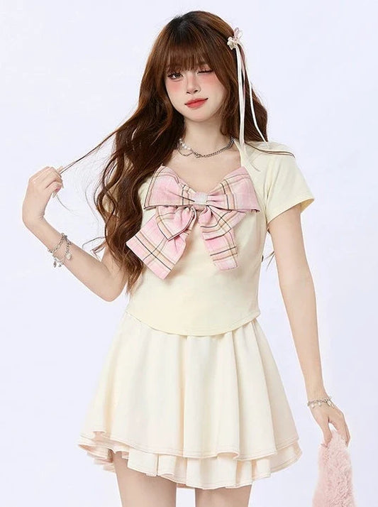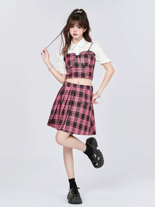 Skirt Ribbon + Top Cake Cami Print Check Black