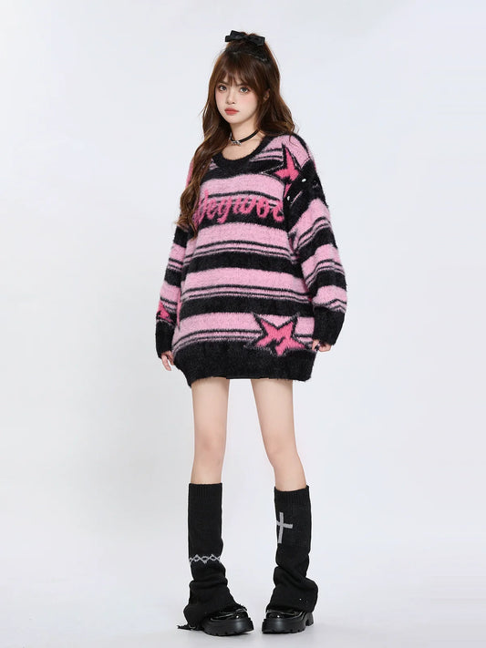 Knit Pink Ribbon + Straps Black Off-Shoulder Top