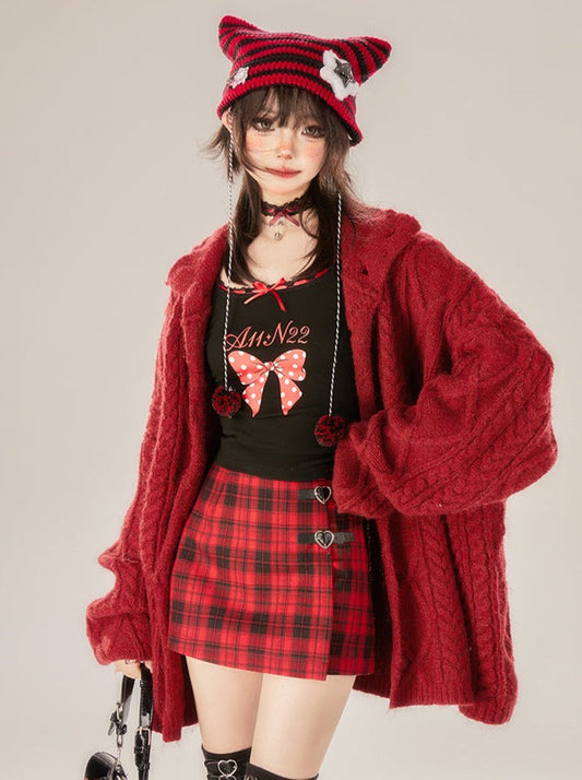 Fairy Style Openwork Knit Cardigan + Camisole Top + Long Cake Skirt