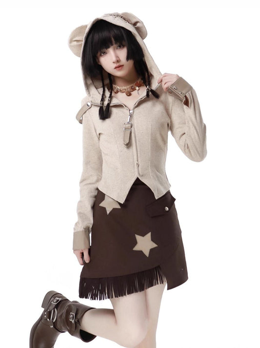 Top Sweatshirt Gray Skirt + American Retro Hoodie