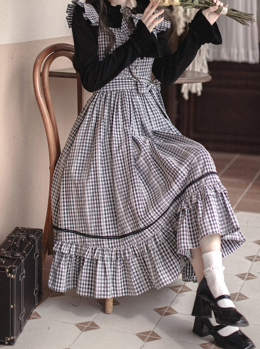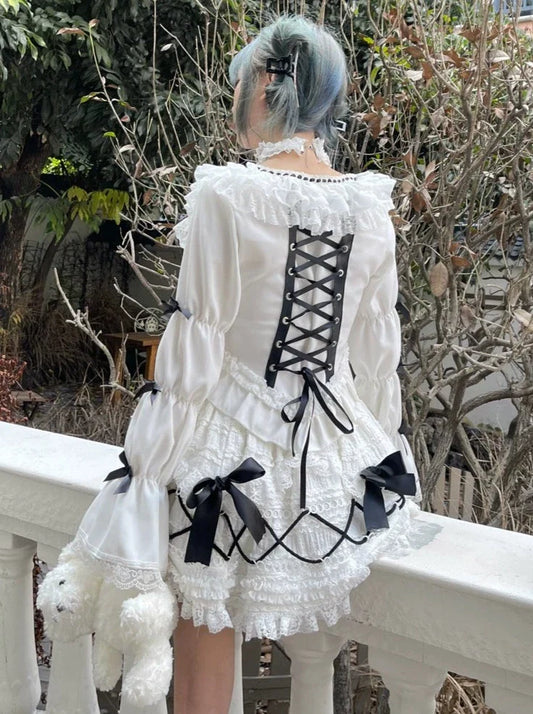 Dotted Waist Top Lolita Frilled Ribbon Light Sundress Shirt Elegant + Lace Ribbon Sweet