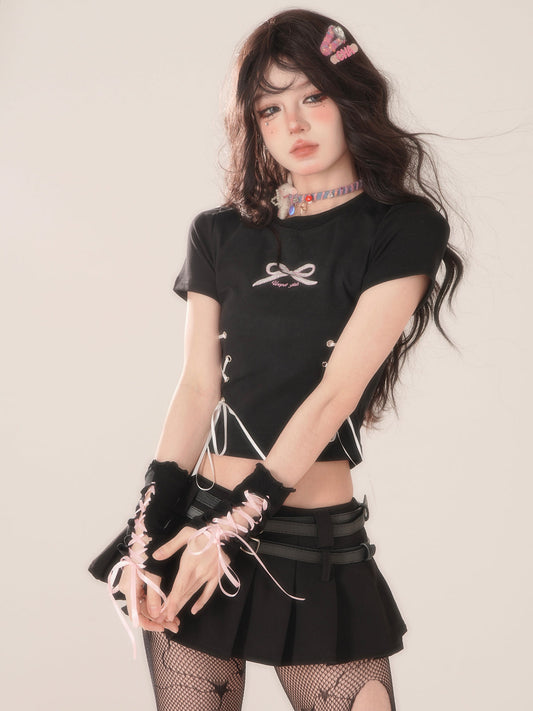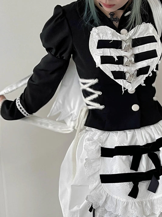 Puff Ram Lace Leg Top Belt Sleeve Ruffle Love Sleeve