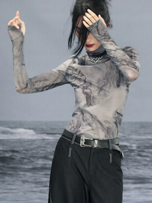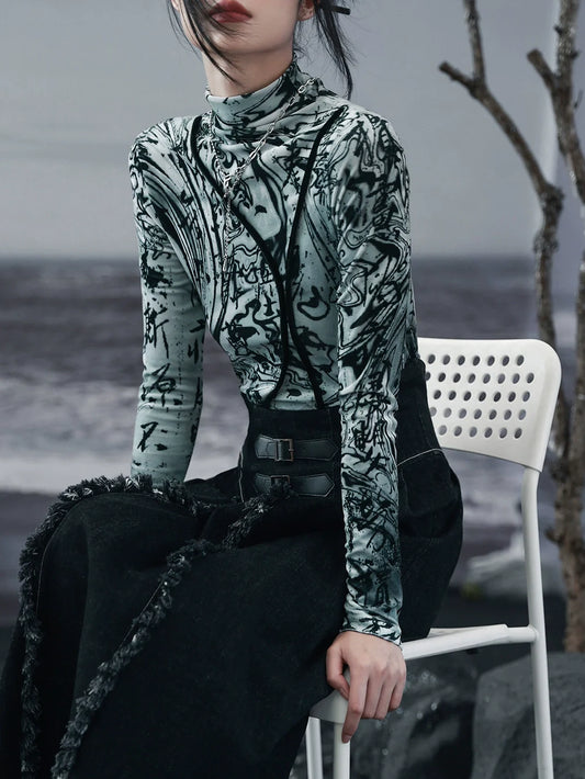 Hot Pin Fit Top Love Slim Print Girl Retro