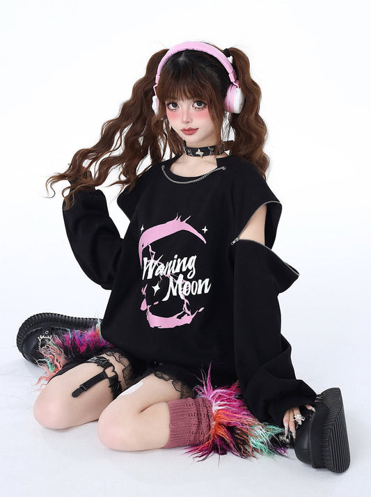 Hooded Subculture Leaky Top Rock Punk Spring Shoulder Chain Original Sweatshirt Dark