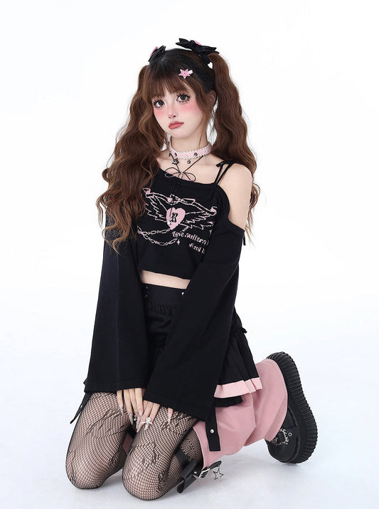 Girly Off-Shoulder Lazy Cool Sweet Two-Piece Top Faux