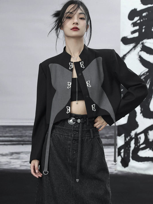 Waist Splicing Retro High Loose Top Double-Breasted Dragon Jacquard