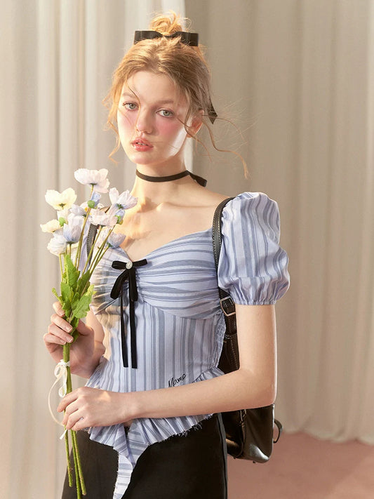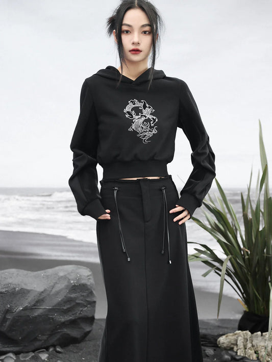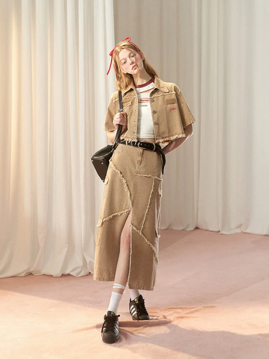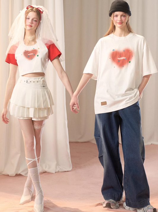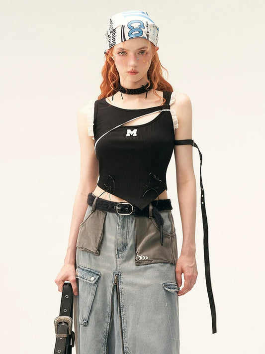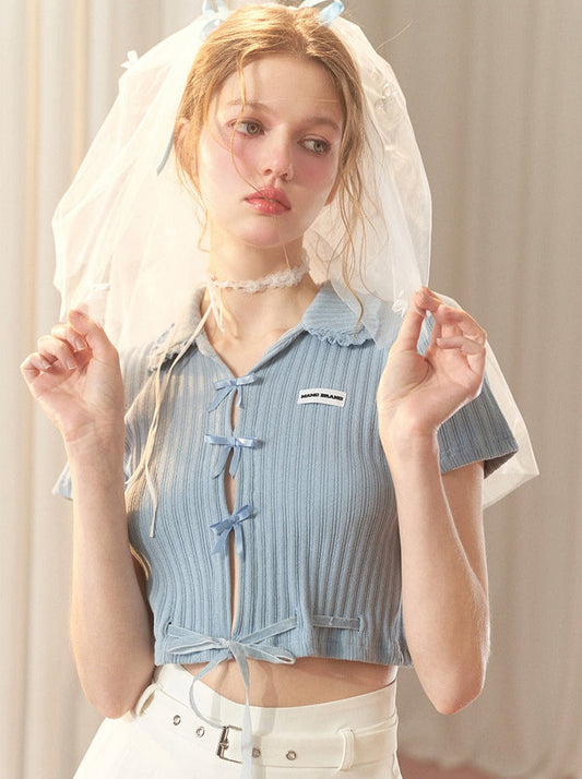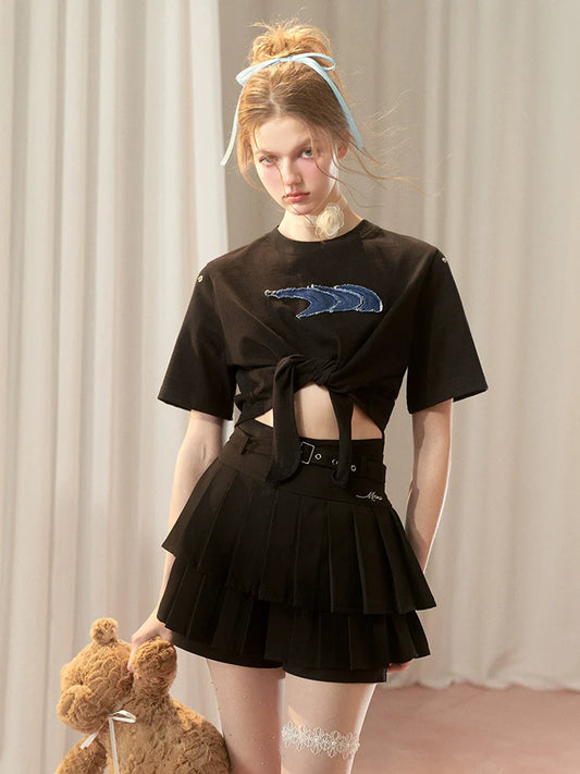 Lace-up Short Top + Flared Skirt + Lace-up Over Polo T-shirt