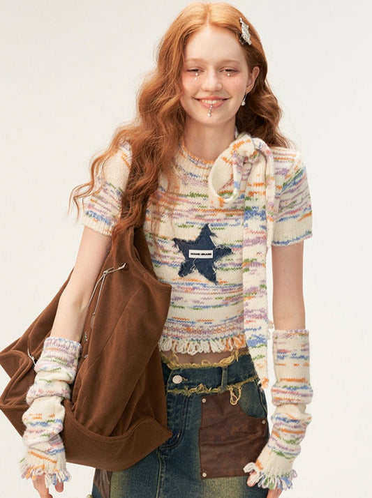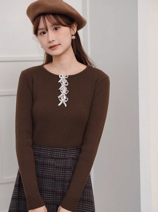 Lace Arm Ribbon Sweet Warmers Top Knit