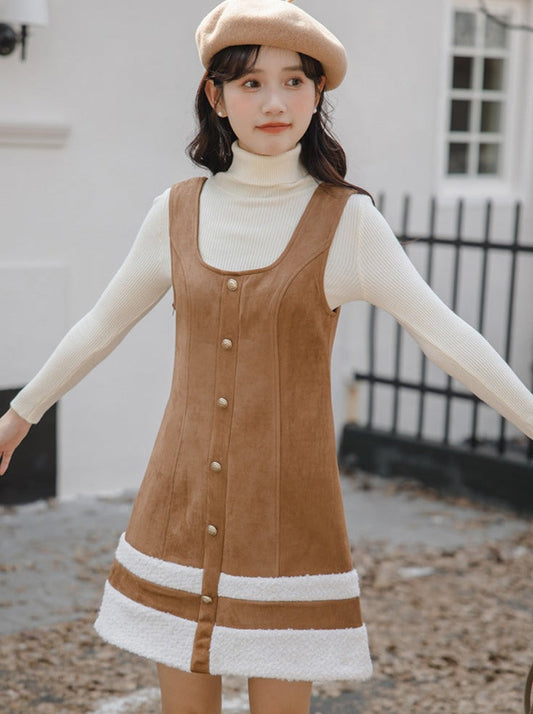 Bear Dress Suspender Red Collar Gummy Check + Tops Inner Lace