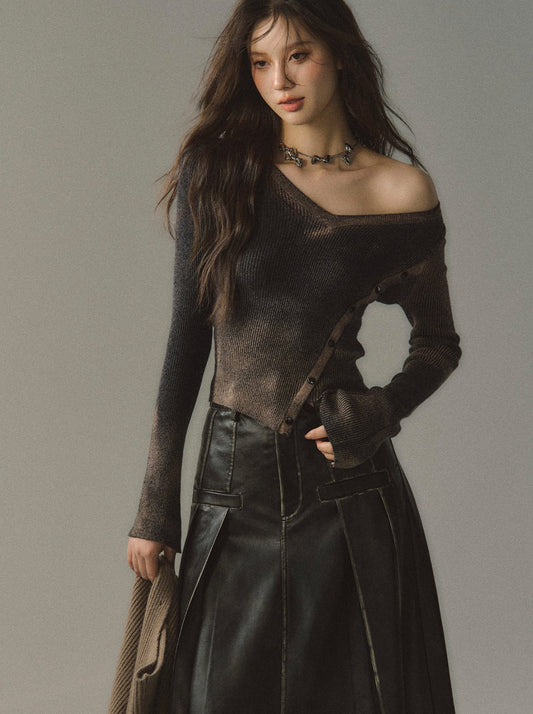 Short Slim V-Neck Button Asymmetrical Osh Top
