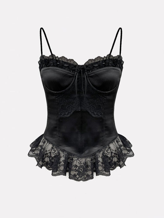 Black Satin Spaghetti Straps Boned Corset Top