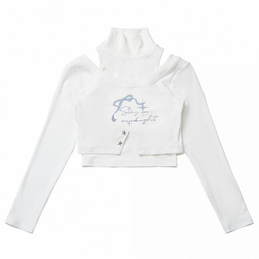 White High Neck Top with Bowknot Cropped Top Set