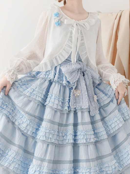 Blue Bunny Ears Bowknot Bodice Layered Skirt Boning Dress + Cropped Cape Top Set
