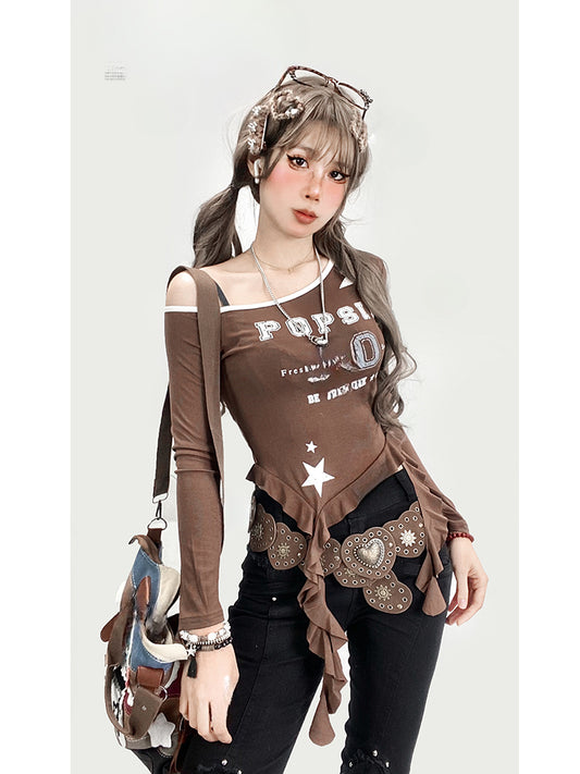 Coffee Asymmetrical Hem Top