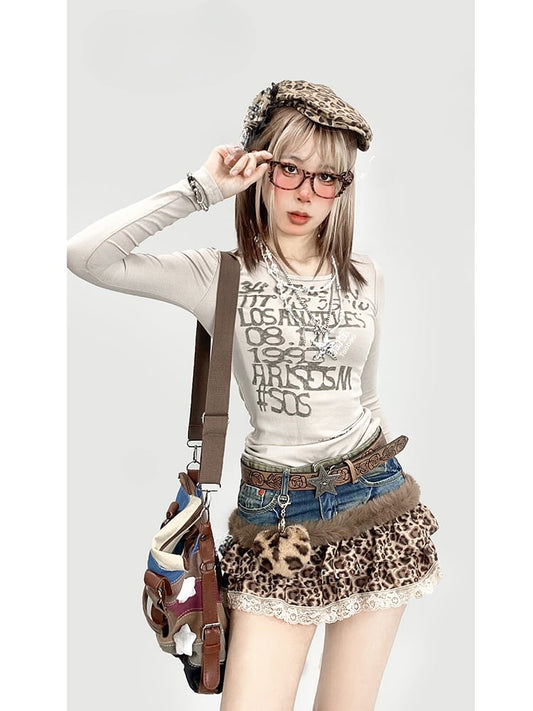 Apricot Slim-fitting Top with Letter and Number