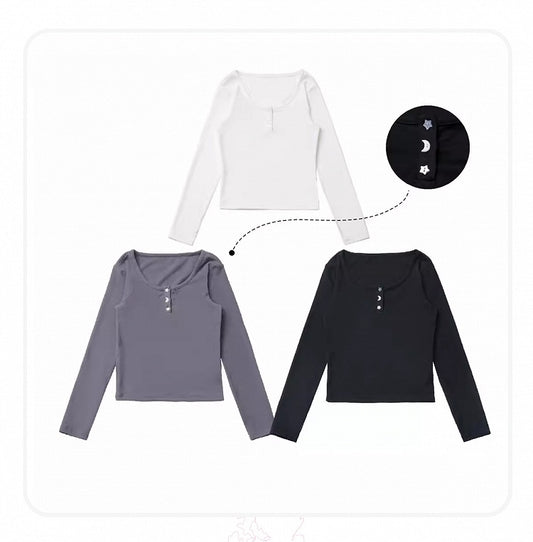 White/Grey/Black Star and Moon Buttons Top