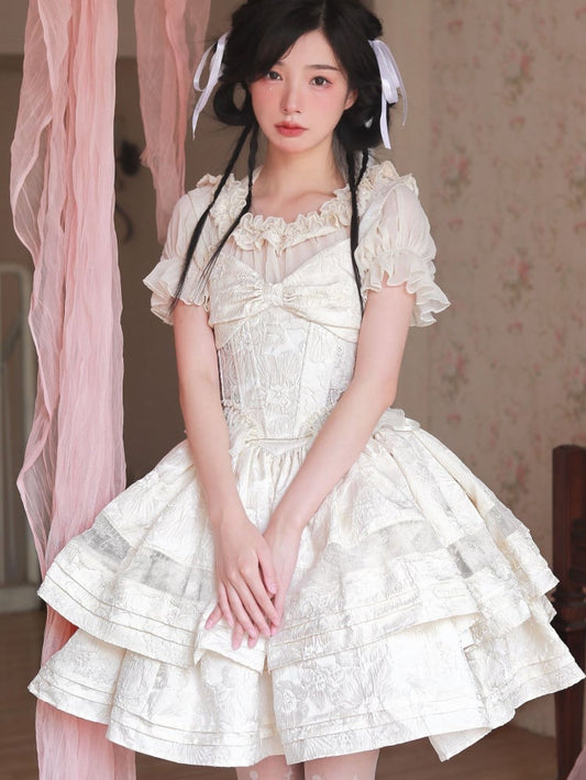 White Tiered Ruffle Hem Top with Bowknots