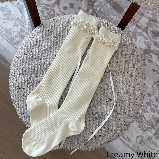 with Warm Colors Bowknot Socks Trim and Straps Calf Lace 5