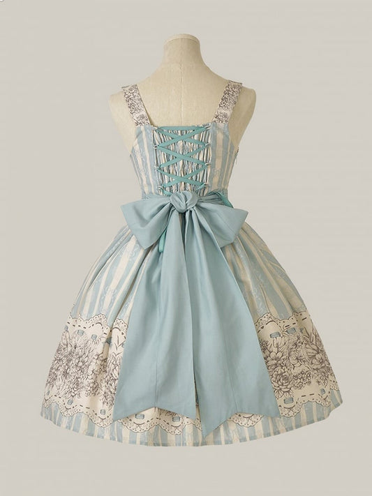 Clock Print and Short Blue Version Lolita Classic Floral Skirt Jumper