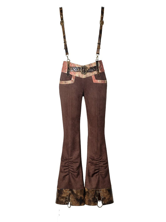 PU Brown Suspenders Orange Detachable V-Waistband Suede Lace Steampunk with Pants