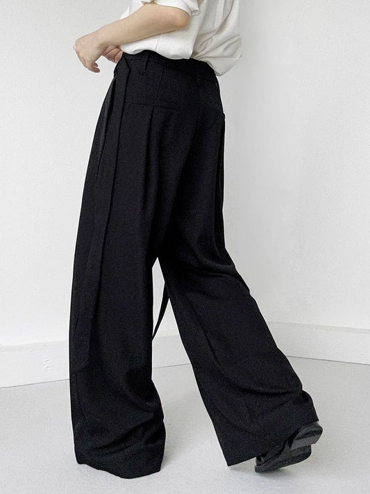 Ouji Ties Side Fit with Relaxed Black Long Wide-Leg Unisex Lolita Pants