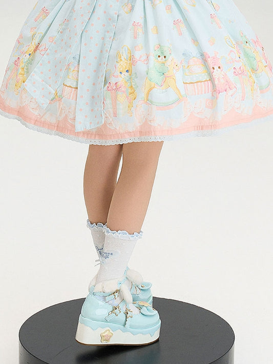 Front Placket Floral Bunny and with Jacquard Lolita Skirt Print Button