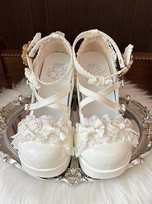 White PU Mary in Lolita Block Crisscross High - Chunky Straps Heel Sweet Janes