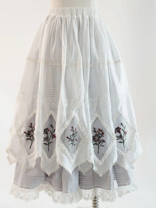 and Waist Elastic White Gray Embroidered Skirt Lily Lolita