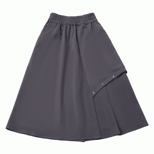 Pleated Metal and Hem with Waist Asymmetrical Elastic Studs Skirt Grey