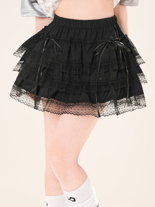 Tiered Accents Bow Stretch and - Lace Black Regular/Thicken Skirt Waist