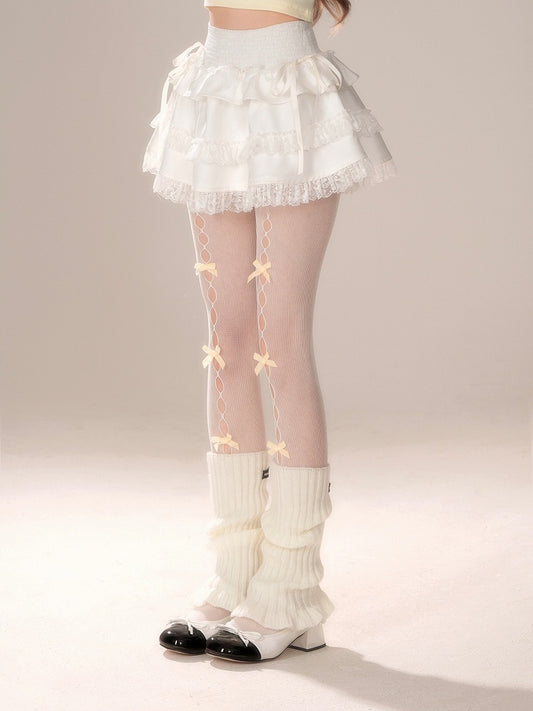Built-in Tiered Skirt Bow White Bloomers with Waist