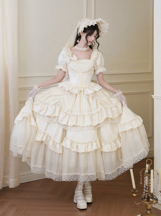 Slip Overdress Dress+Flutter Sleeves Neck Tiered Two-pieces Skirt Polka-dot Yume Kawaii Pink Set- Halter