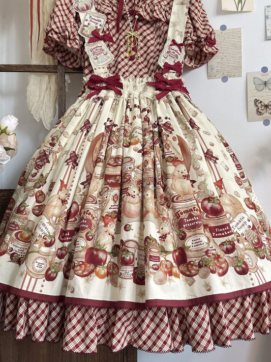 Detachable Skirt / Tomatoes Shoulder with Egg Chick Hen Lolita Straps Print and Country Fried