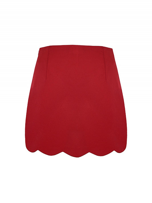 Scalloped High Skirt Waist Edge Red Trim