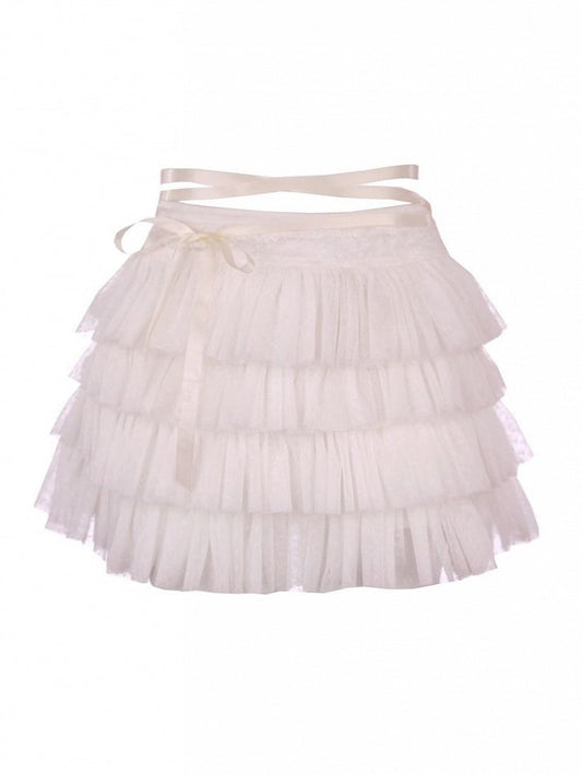 With Satin Bow Dot White Tiered Puff Tulle Polka Skirt