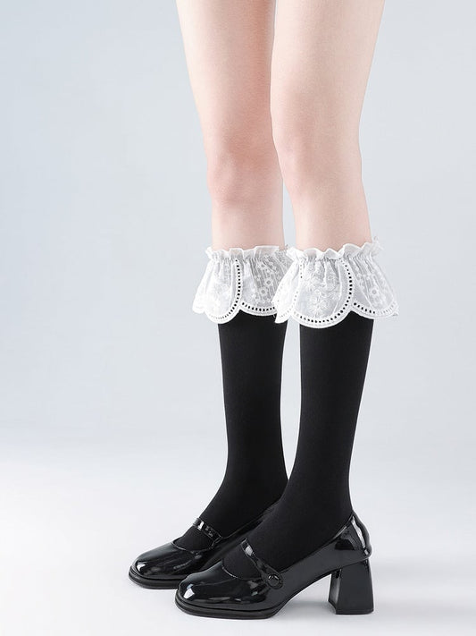 Cutout Ruffles Lace Calf Socks Lolita White/Black