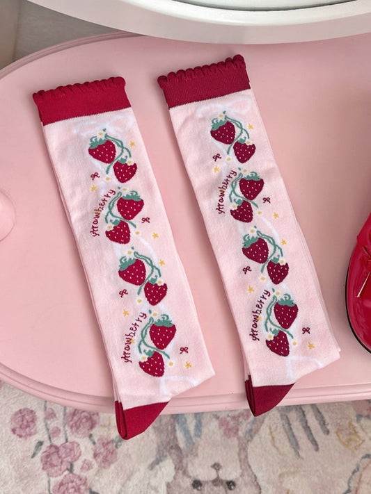 3 Options Lolita Strawberry/Cherry-Themed Cotton Calf Socks