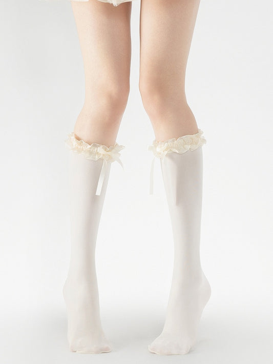 Lace Ruffle Layered Bow Calf Socks
